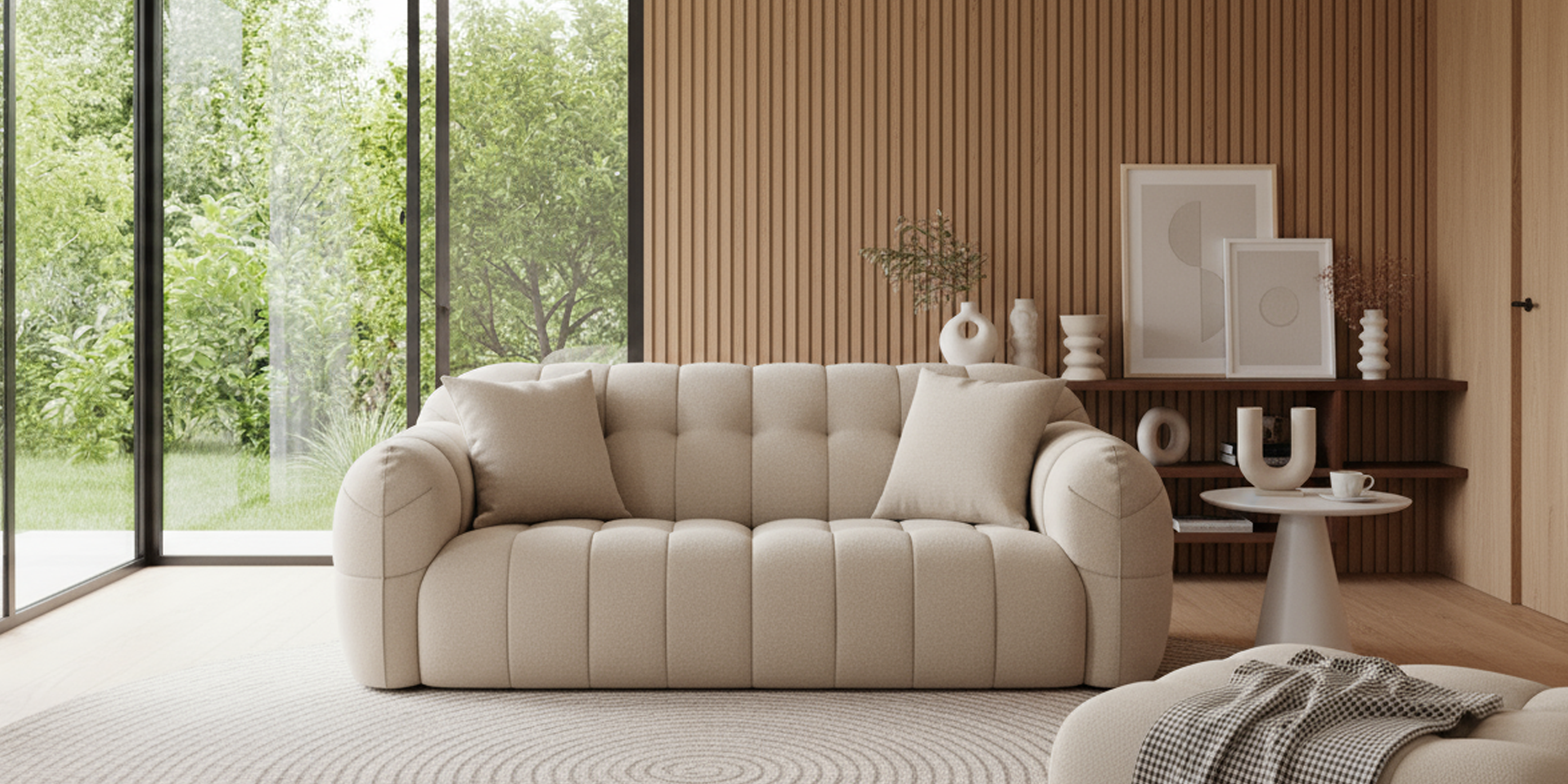 In a refined beige linen‑blend, this sofa feels as gentle as a cloud. Subtle texture meets balanced support, with breathable comfort for long lounging, keeping your living room fresh, relaxed and chic.