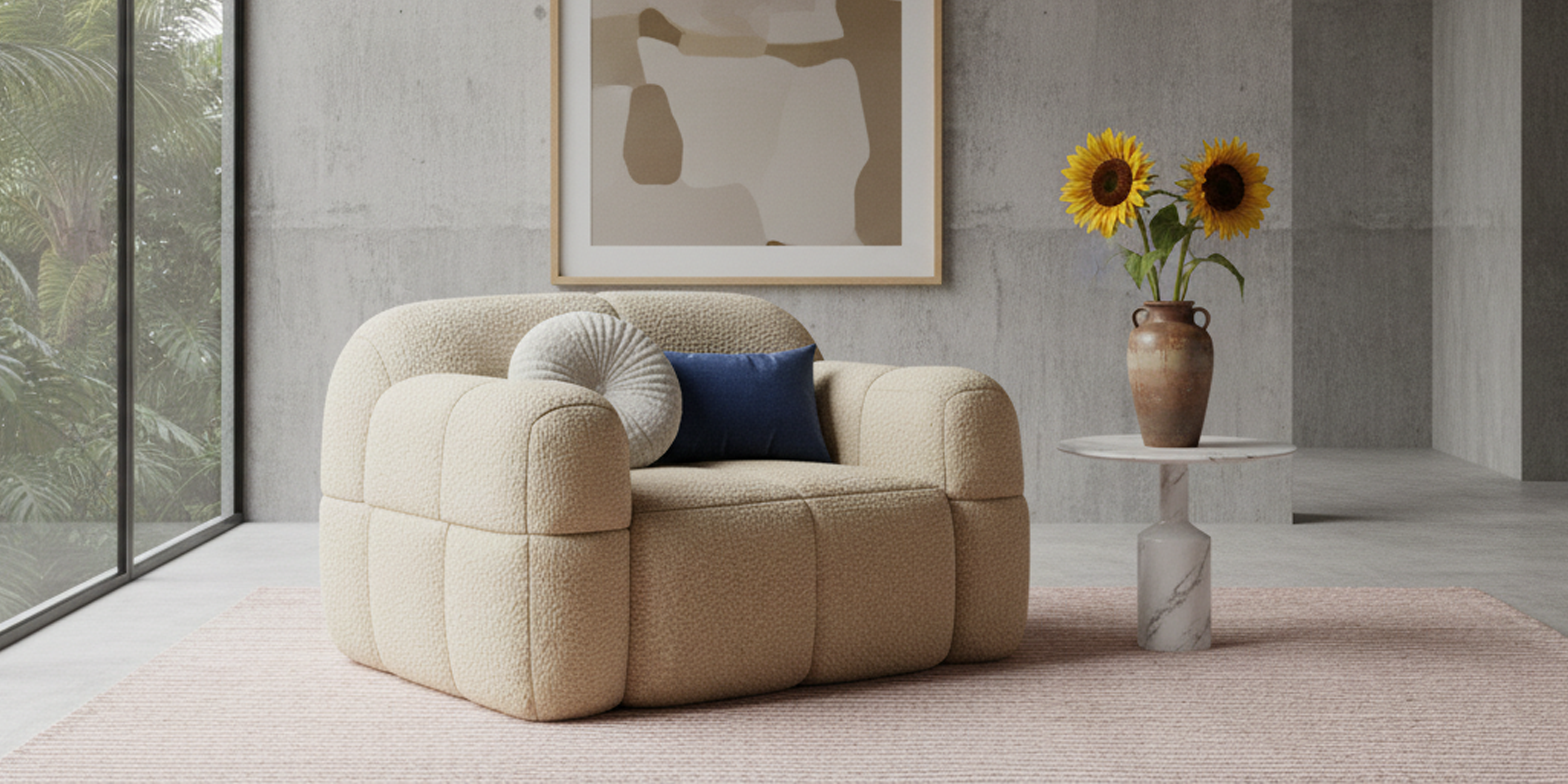 It's like a big fluffy marshmallow. When you plop down into it, you feel your whole body being gently held up. This is probably the embrace you most desire when you get home.
